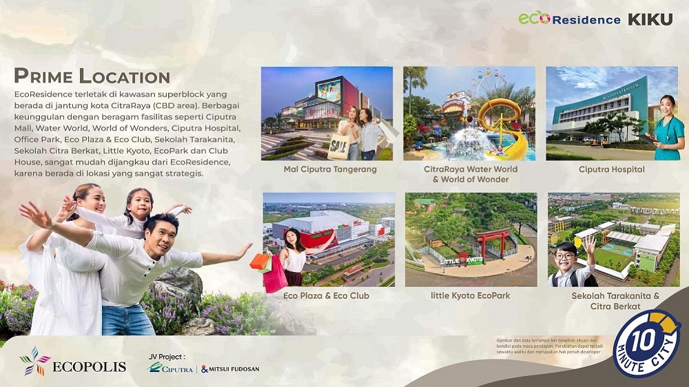 Lokasi Cluster Eco Residence dikelilingi oleh Fasilitas Skala Kota mandiri yang sudah beroperasi