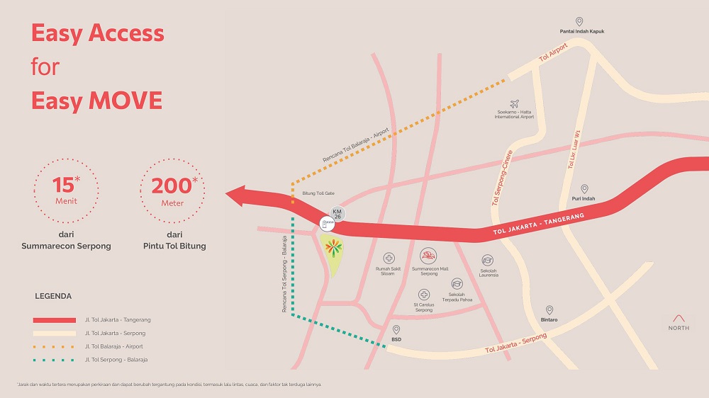 Lokasi Summarecon Tangerang sangat strategis hanya 200m dari Exit tol Bitung km26 dan hanya 15 menit dari Gading Serpong.